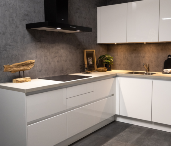 Een L-keuken is een praktische opstelling waarbij twee keukenblokken in een hoek staan. Deze vorm zorgt voor een fijne werkhoek, veel kastruimte en een ruim werkblad. Dankzij de slimme L-vorm benut u de beschikbare ruimte optimaal, ook in een kleinere keuken.